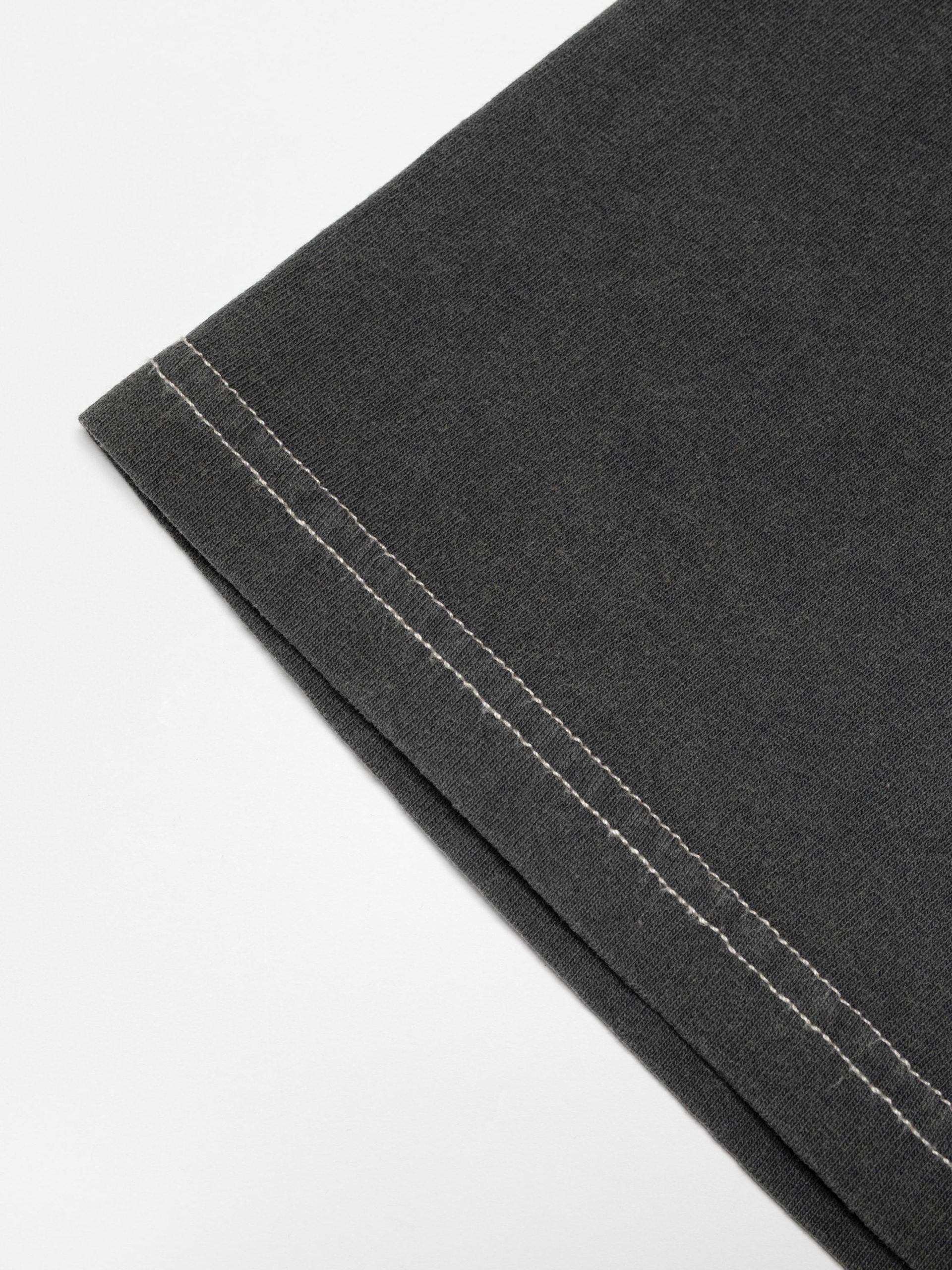 Crew neck tee made with organic cotton. The open-end spun yarn gives an open knit with an irregular character, a dry feel, and a little hairiness. The faded shade and vintage look result from the garment dye and, on top of that, a fade-out wash. This gives the lived-in outlook we think goes so well with denim. The color will continue fading as you wear and wash it. Bottom and sleeve hems are made with contrasting, off-white top stitches. Print on the chest.