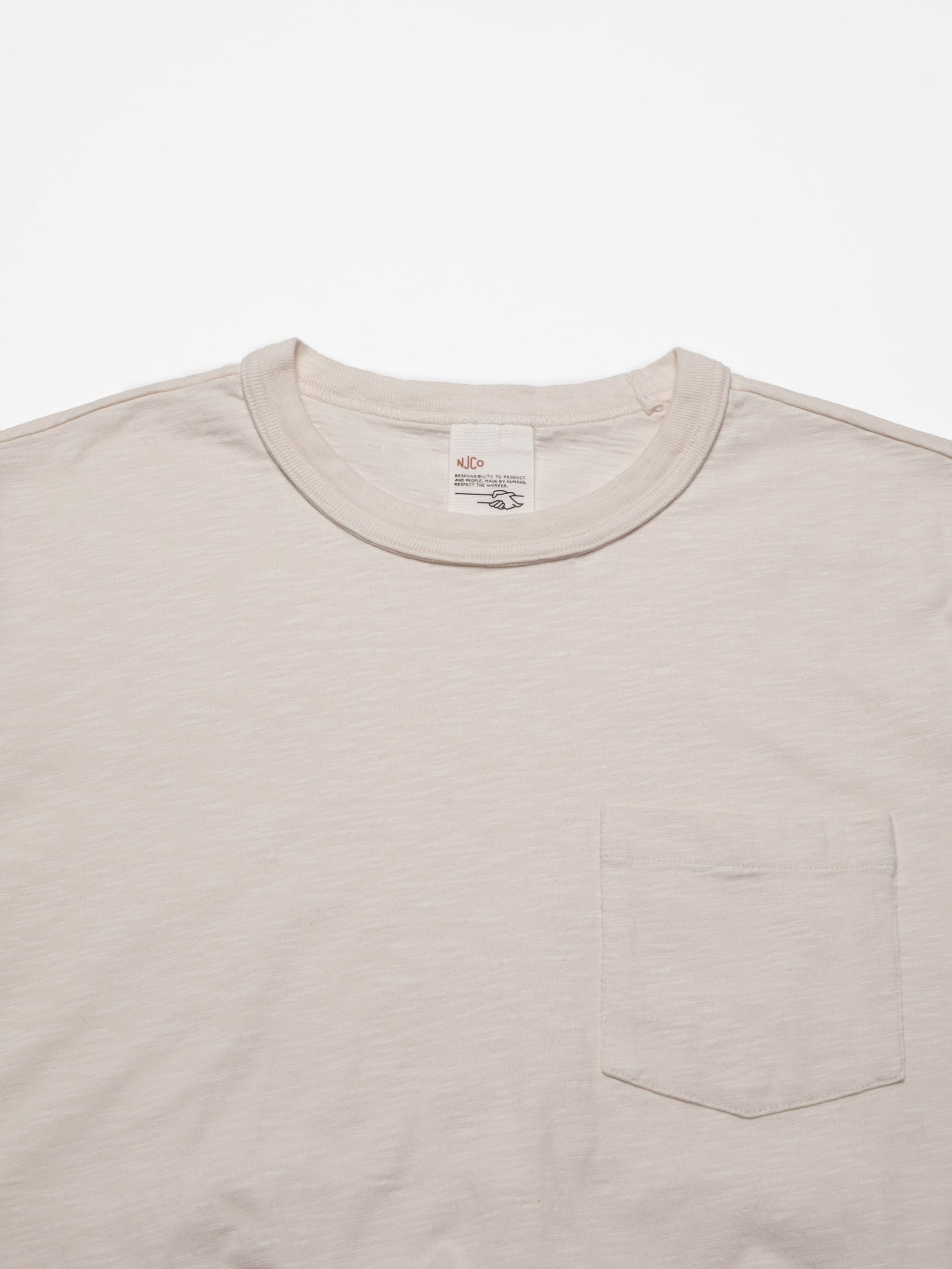 Regular fit crew neck t-shirt made in heavy organic cotton jersey with textural surface. Features a chest pocket and wide rib binding at the neck.