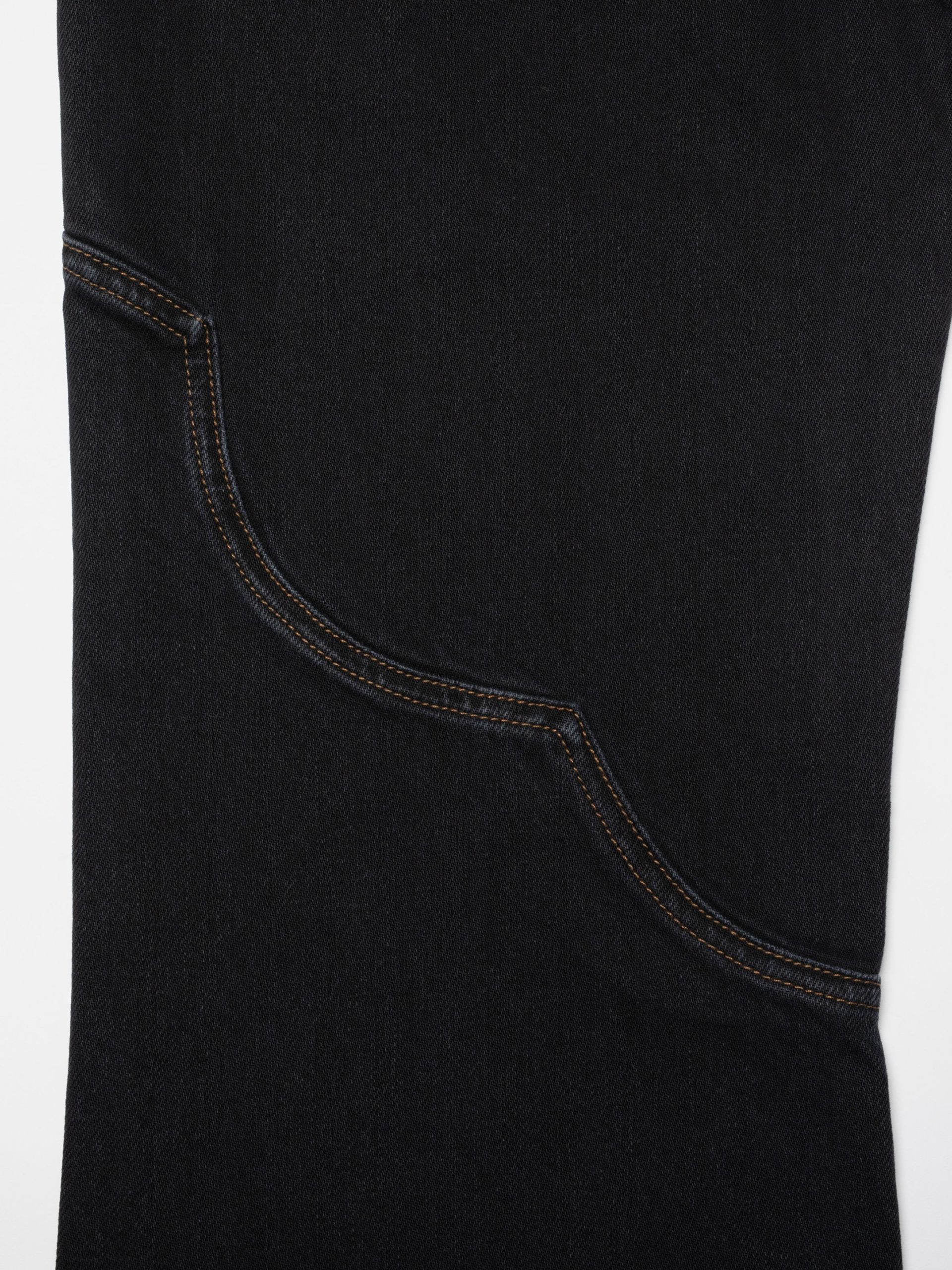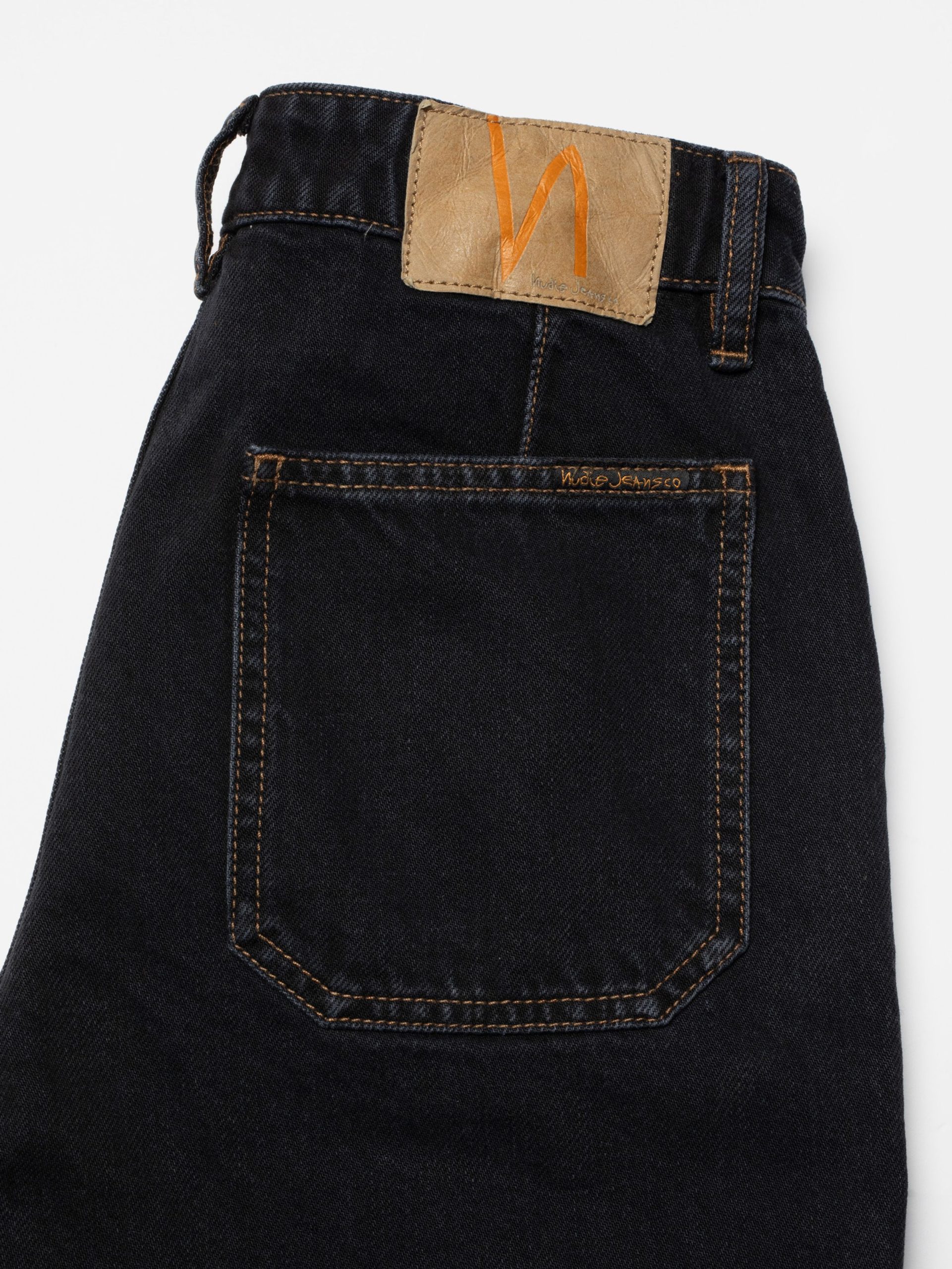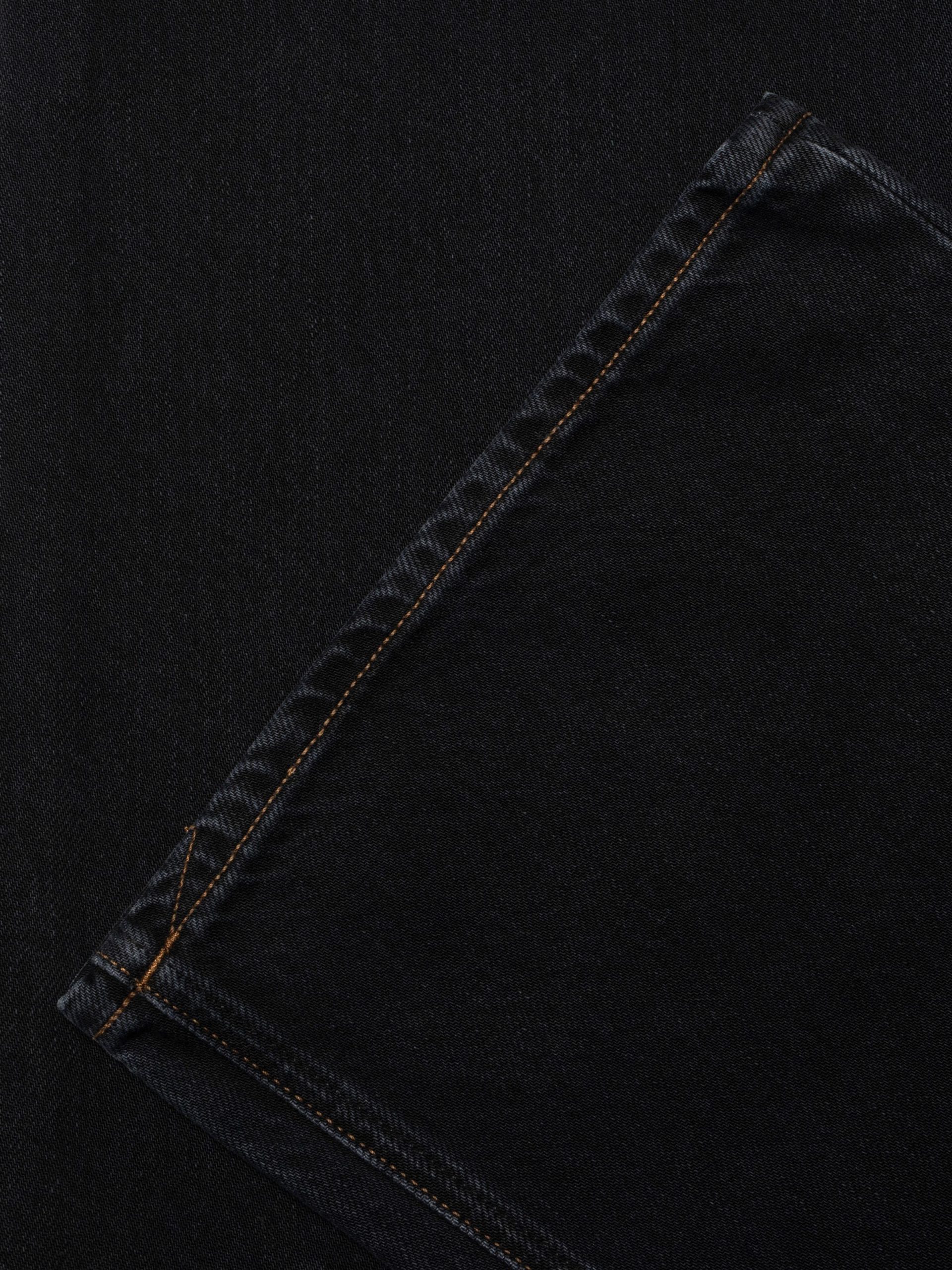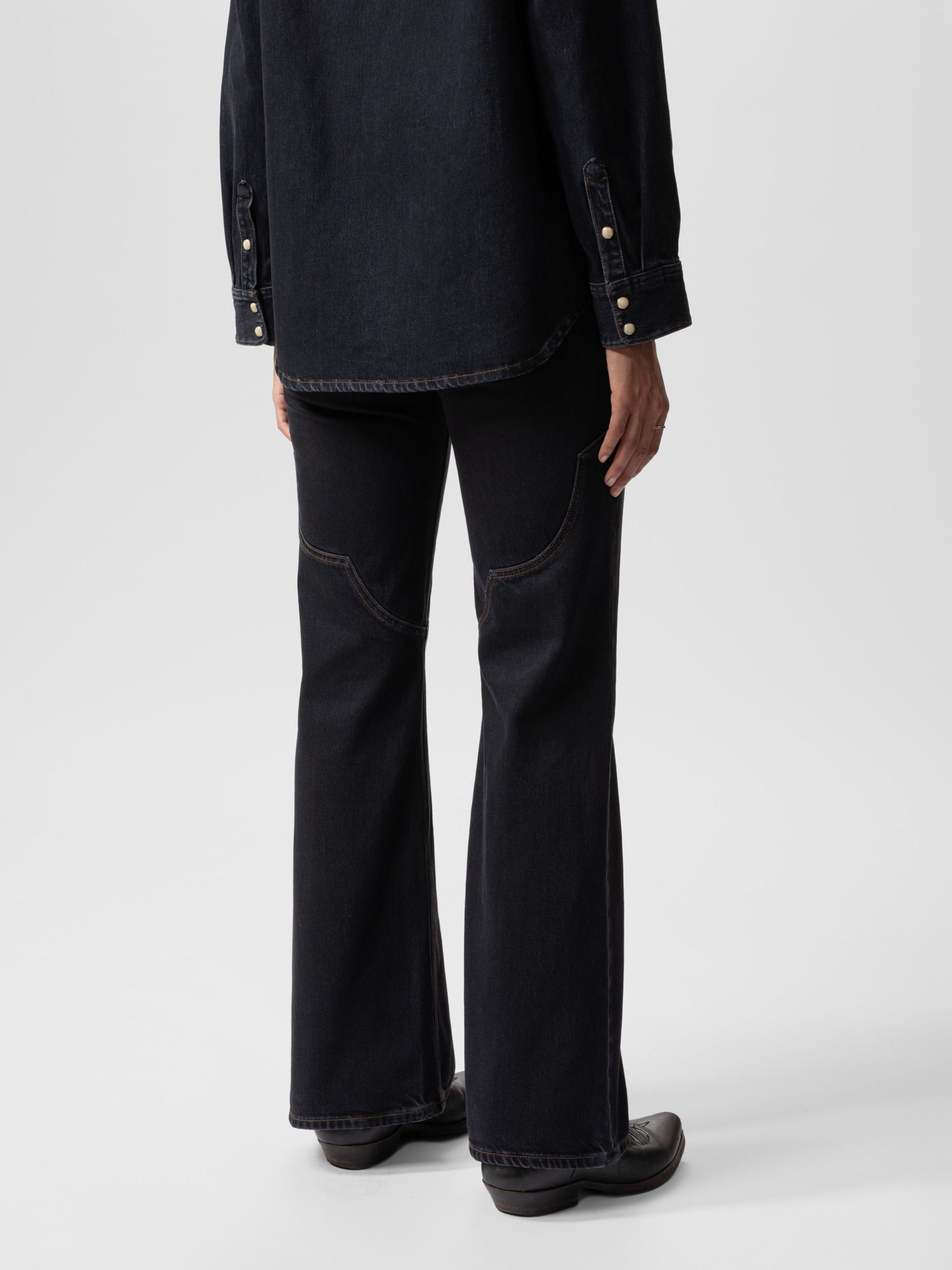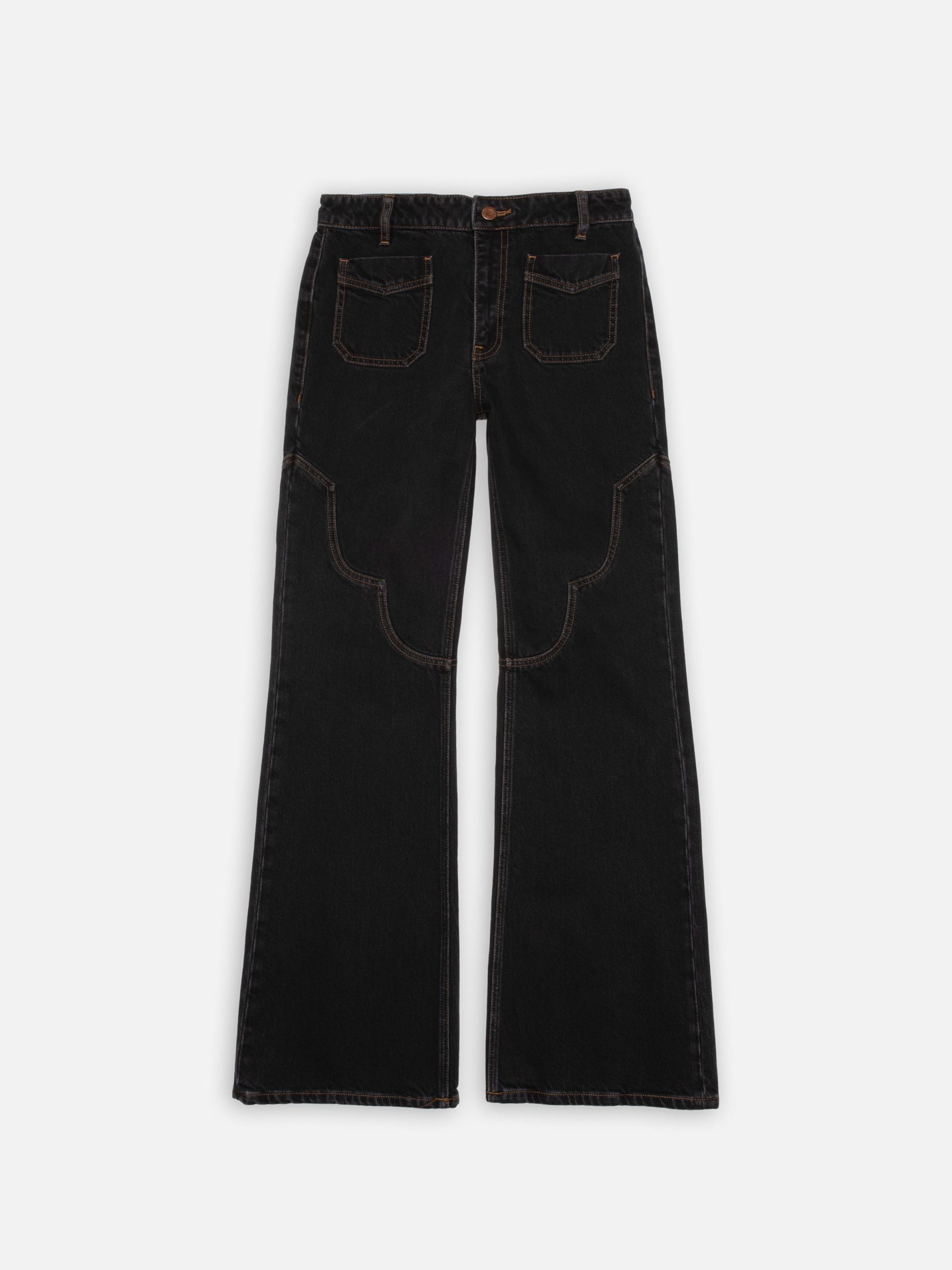 Holly is our take on western-style pants, featuring a yokeless regular fit with a wide leg, a high waist, and front-facing patch pockets. In this special iteration, they are adorned with beautifully decorative seams above the knee and, for a Nordic twist, are drenched in washed black denim.