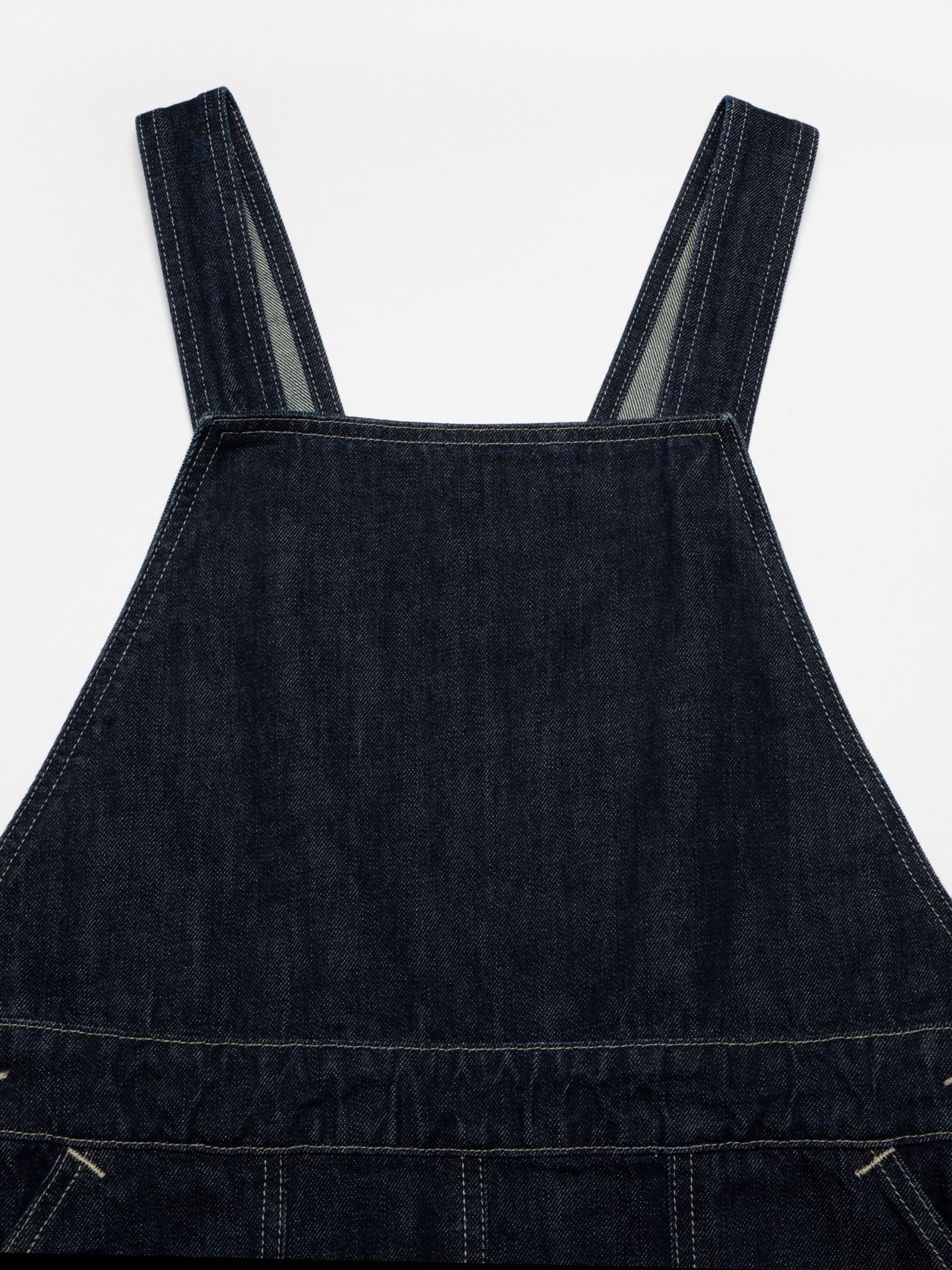 Malwa, a regular-fit dungaree dress, features patch pockets and adjustable shoulder straps. Sewn with off-white thread, it lends a clean, workwear-inspired aesthetic. From its silhouette to its craftsmanship, Malwa embodies our passion for workwear dresses—where functionality and practicality meet timeless simplicity.