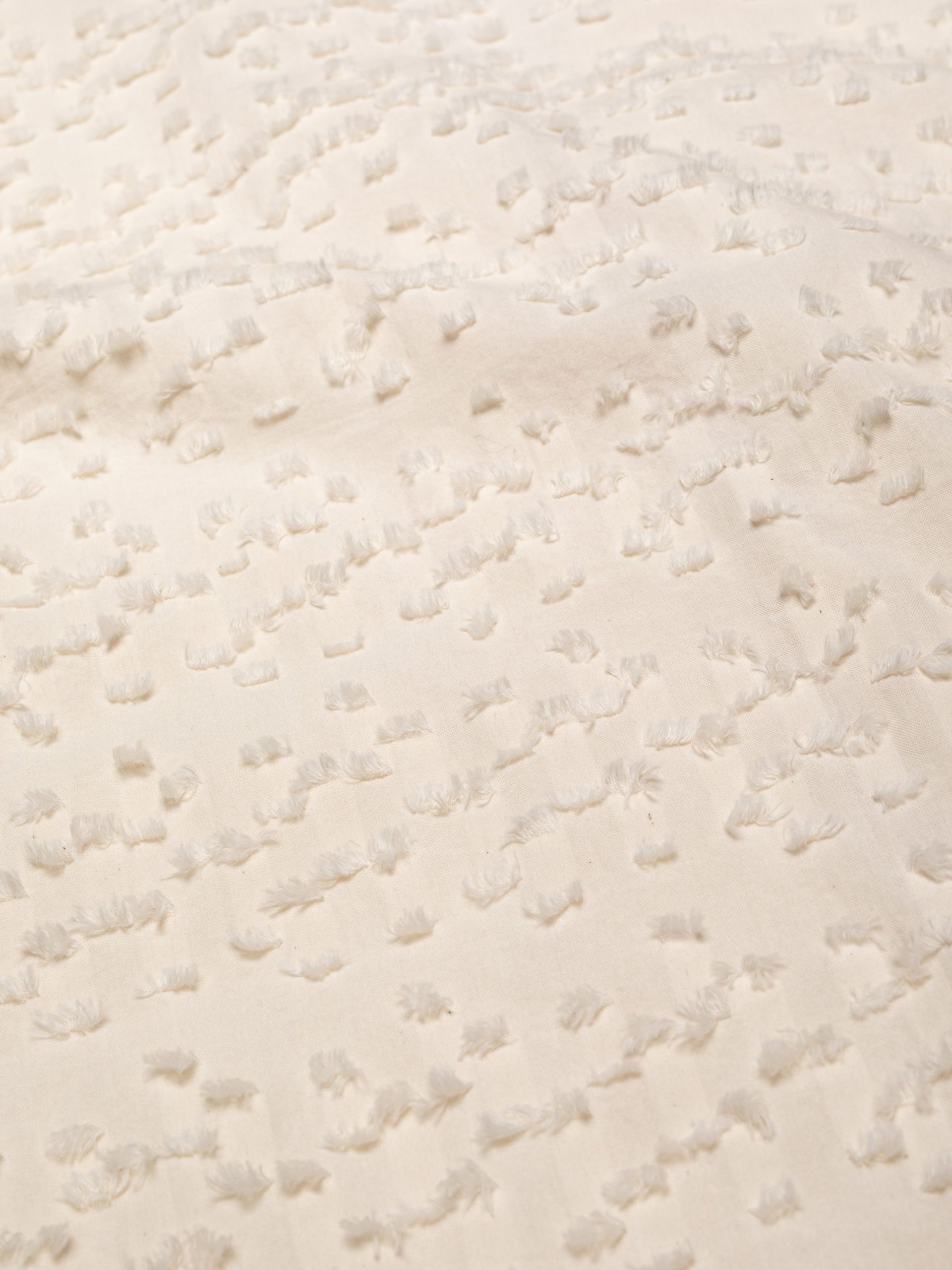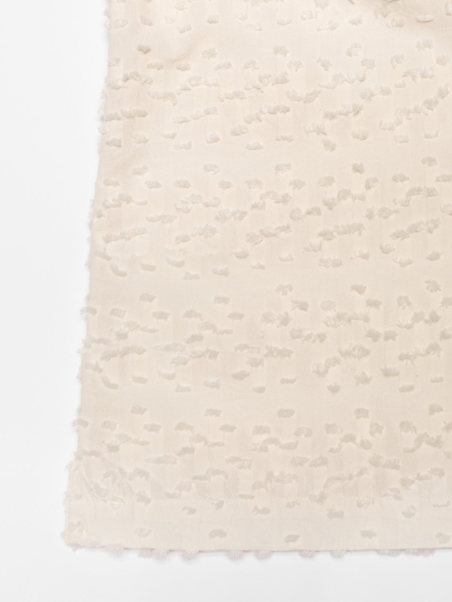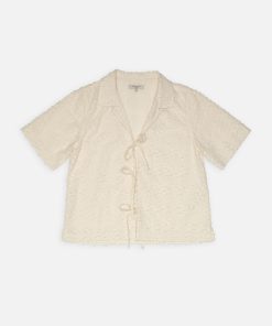 Tie-front camp collar shirt crafted in fabric with short fringes intertwined in the weave, which gives a very interesting 3D effect.