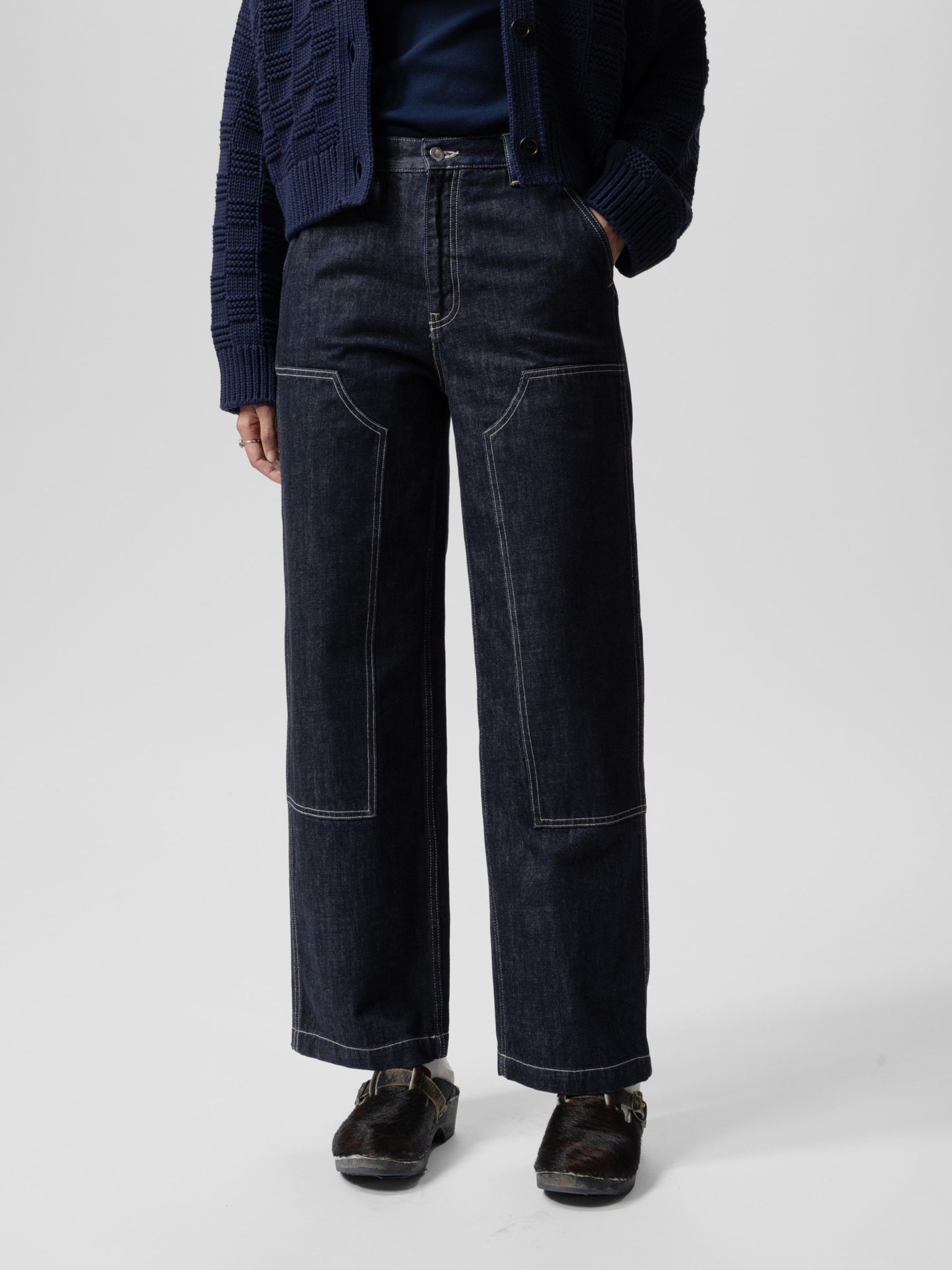 Wendy features a regular fit and wide leg in a four-pocket design with reinforced knees. The inseam and outseam are finished with twin-needle stitching, lending a clean, workwear-inspired aesthetic. From its silhouette to its craftsmanship, Wendy embodies our love for simple workwear pants condensed into one beautiful pant.